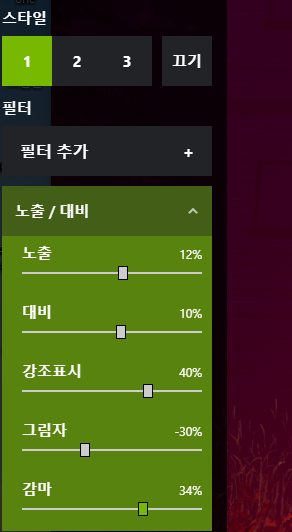 이 필터를 통해서 데바데 밝기 조정이 가능합니다.