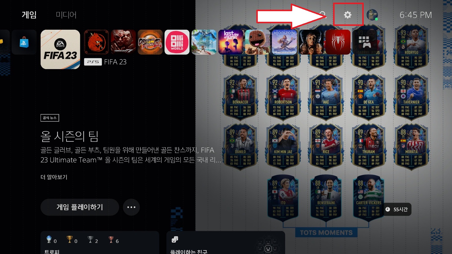 플스5를 켜신 후에 상단 위쪽에